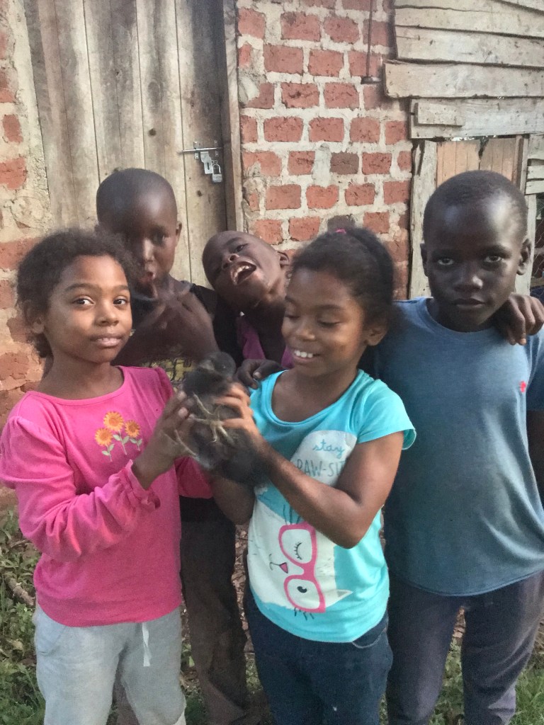 “Yes, Mommy, we are keeping it in the chicken house. Look, see!” Runs to get the bird.
