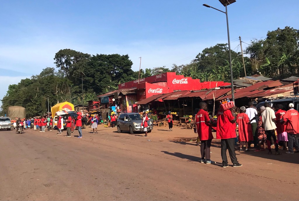 There are locations along the road to Jinja that are crowded with street vendors and every vehicle that slows gets mobbed by street vendors offering soda, water and all kinds of food. It always tickles my funny bone to watch from a distance. I see a large group of vendors sprinting top speed after a slowing vehicle while balancing a box of drinks a handful of meat skewers or snacks. The event looks comical, while the reality behind it could be more grave. Those who cannot run don’t get an income. Yet because I never want to be the object of attention in that situation, I have never dared to stop. If I stop, there will be 3 to 4 eager faces inside the window to my vehicle, discussing the purchase of snacks at that proximity is a bit unnerving.