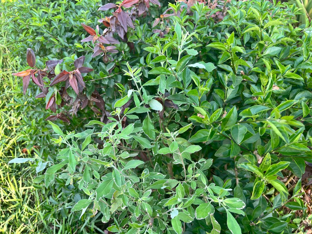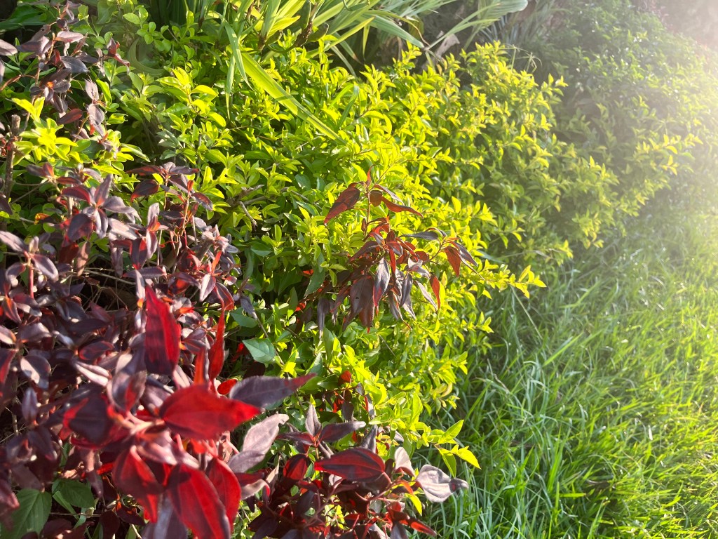17. Hedge shrub: purple and yellow